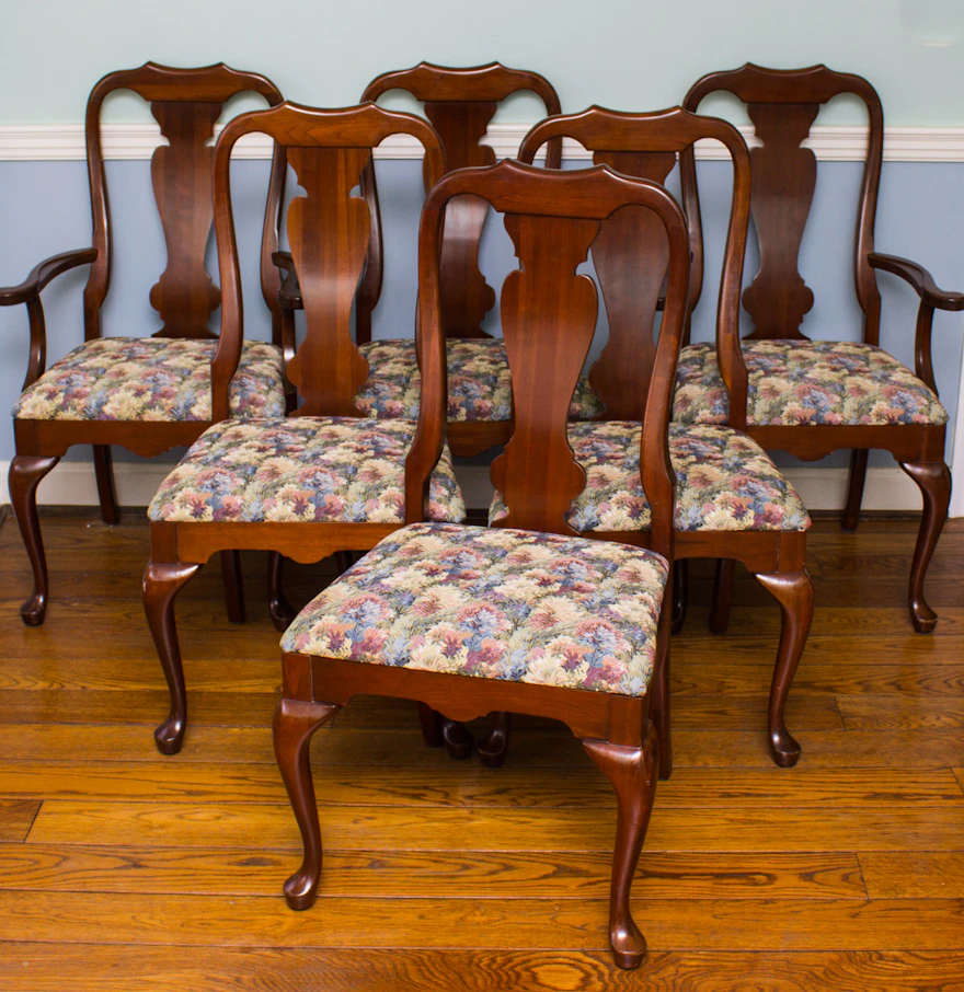 Queen Anne Dining Room Set. The living room showcases a striking fireplace and overlooks the veranda. These Antique Queen Anne dining chairs have got a walnut finish, removable seats and solid wood construction.