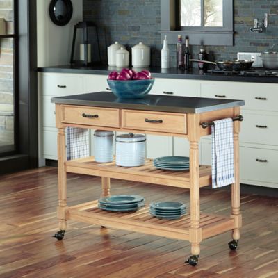 Find Kitchen Islands & Serving Carts at Wayfair. Find portable kitchen islands and carts in styles and colors to match your space. This is a professional-style kitchen cart that would look great in a private kitchen as well as in a commercial kitchen. Home Styles Wood Top Kitchen Cart w/Breakfast Bar features a solid wood construction in a natural finish. Home Styles Mobile Create-a-Cart Cottage Oak Finish Four Door Cabinet Kitchen Cart with Stainless Steel Top, Adjustable Shelving. Home Styles Napa Kitchen Cart features a solid wood construciton in a natural finish, Brushed steel hardware,Two easy open utility drawers on metal glides; double door storage cabinet w/adjustable shelf; center storage area with two shelves; spice rack/towel bar; paper towel holder,and Heavy duty. Home Styles Kitchen Carts : Use kitchen carts to make meal preparation and service more convenient. Try an elegant finish like black, espresso or oak to blend in with your existing kitchen cabinets.